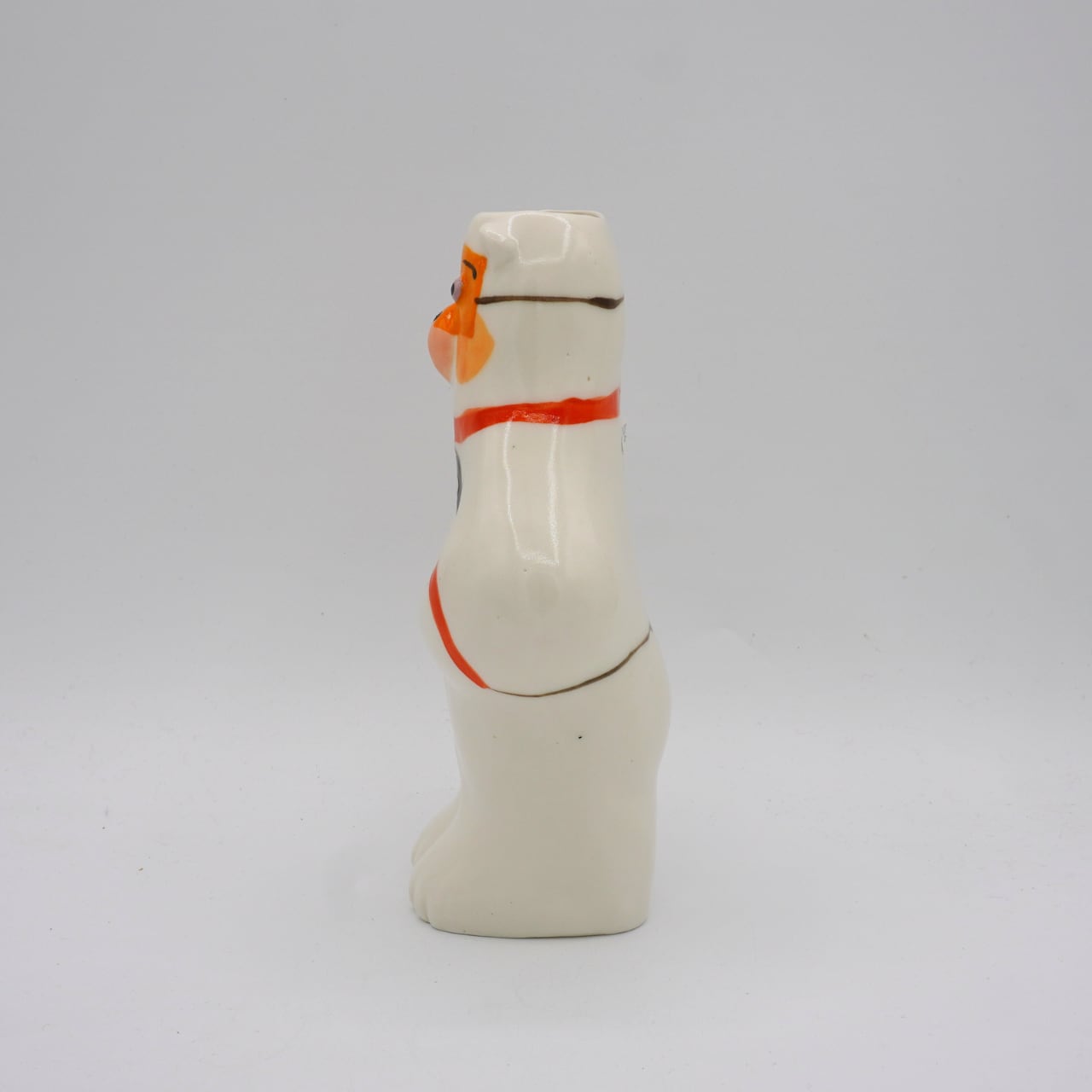 株式会社東雲堂さまより許可を得て、今回のために制作された「にわかせんぺい」お面をつけたくまの花器です。