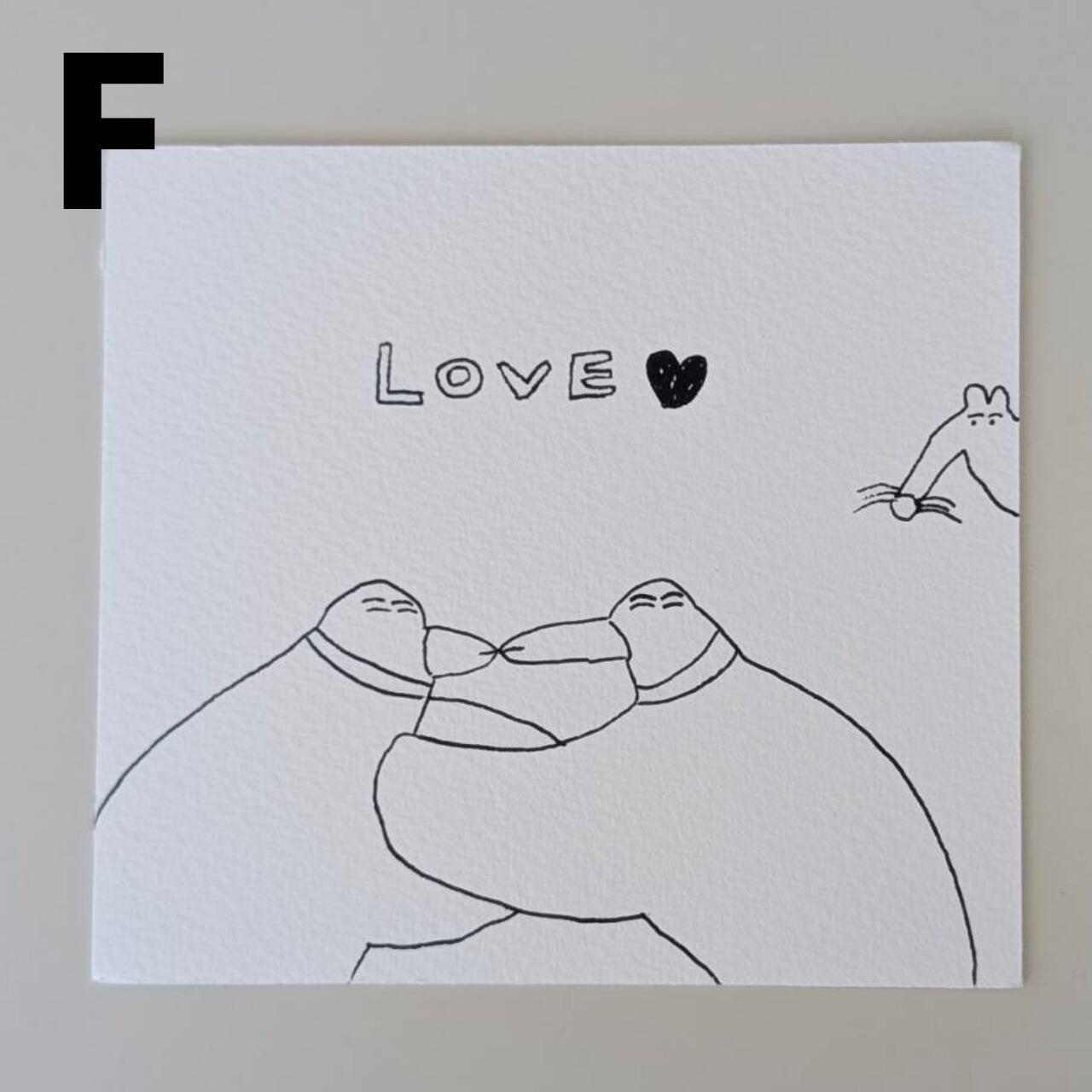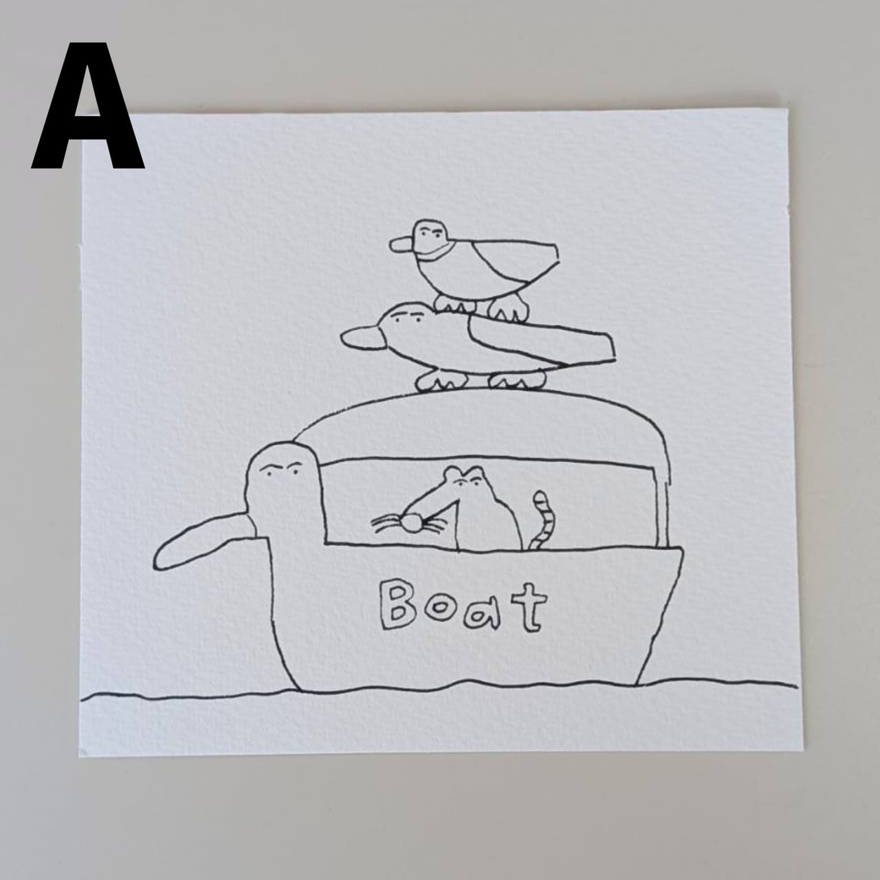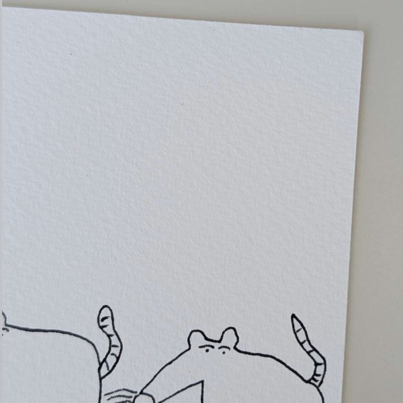 エンボス加工がほどこされたような質感の紙に、黒のサインペンで描かれています。